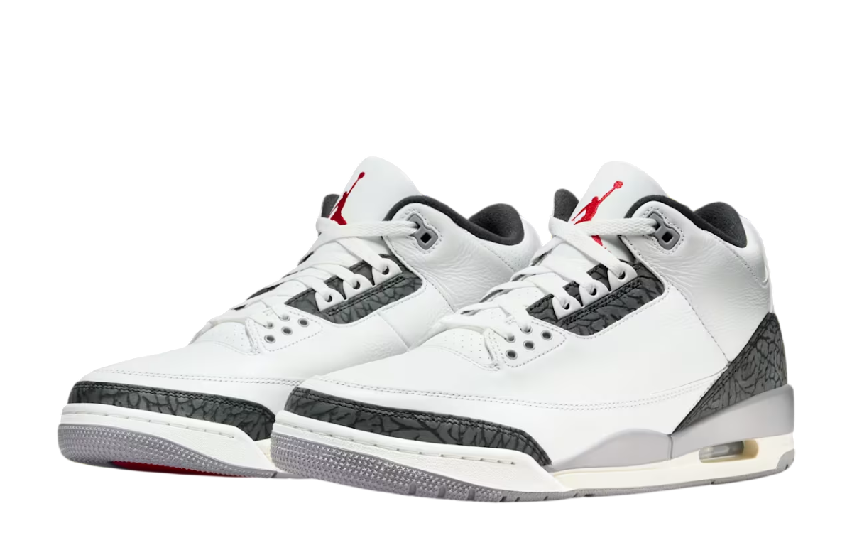 Clean and iconic, the Air Jordan 3 returns in a fresh yet familiar colourway. The Summit White leather upper is paired with elephant-print overlays and accents of Cement Grey and Fire Red. A padded collar and Nike Air cushioning deliver lasting comfort, while MJ’s third signature silhouette keeps your look timeless and confident.