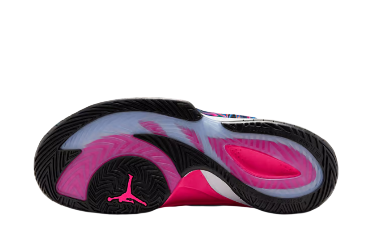 Aside from the vivid patterns, the Jordan Luka 3 "Imaginarium" incorporates a "South Beach" color palette, with cool teals and hot pinks that provide a fresh, eye-catching look suitable for court or casual wear. Interestingly, the imaginative detailing is toned down in the grade school versions, where the IsoPlate is finished in a stark matte black, giving it a more subdued but equally stylish appearance.